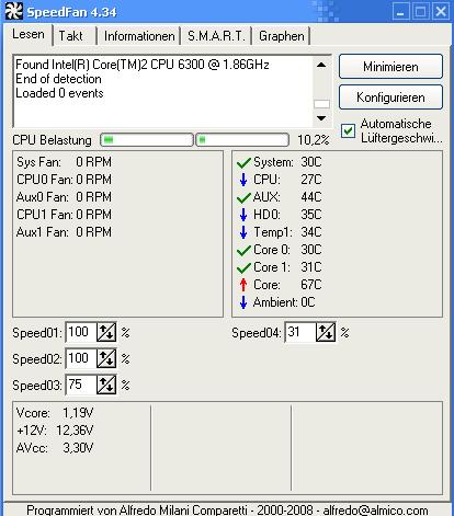 Ich besitze CPU Lüfter, HD Lüfter + einen Gehäuse Lüfter unter dem Netzteil!