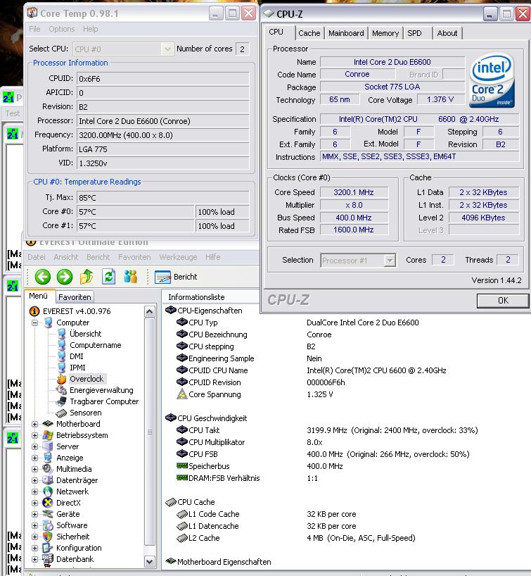 Everest zeigt mir jetzt momentan im Windows (Vista) Betrieb folgende Werte an: