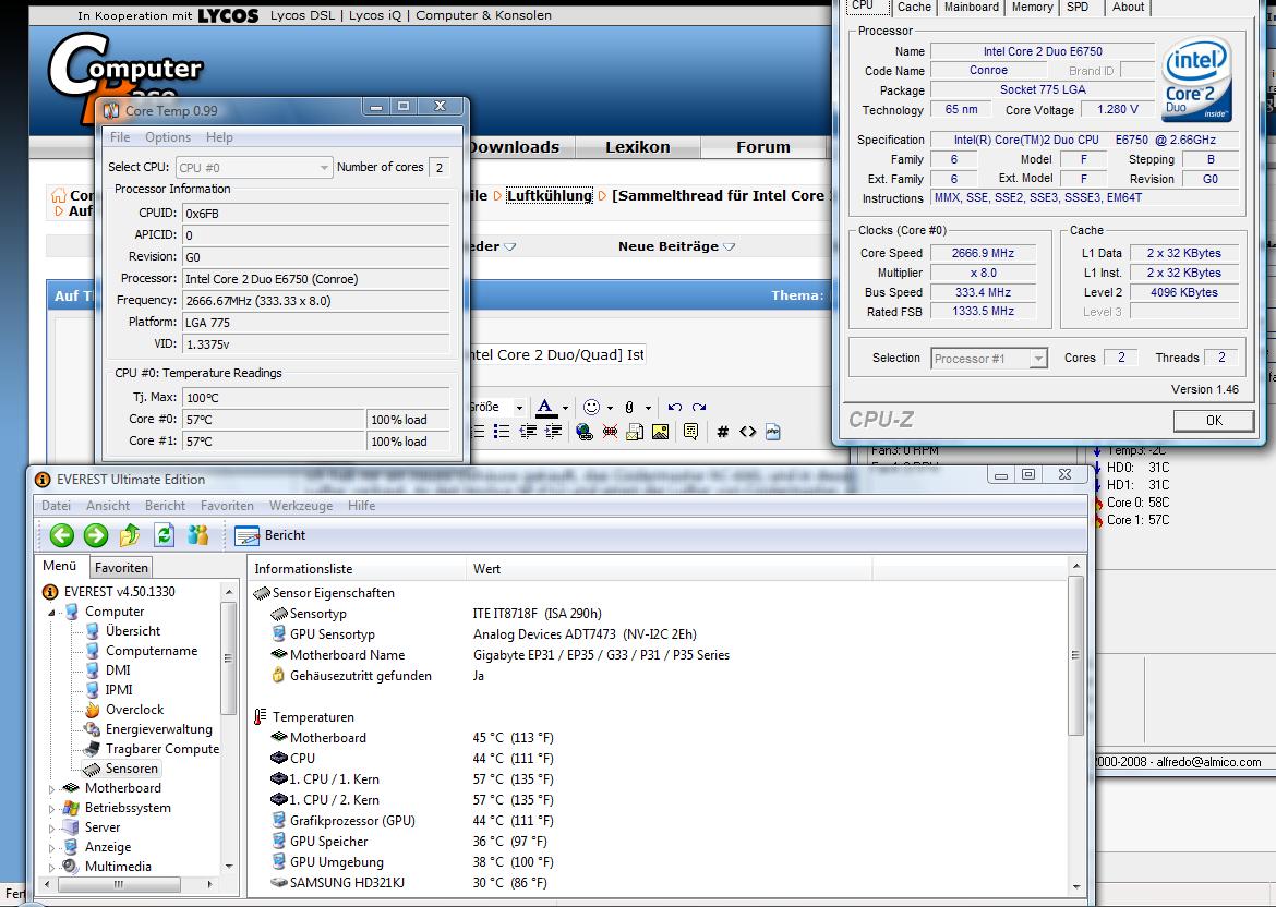Die Kerntemperaturen sind auch so in CoreTemp.