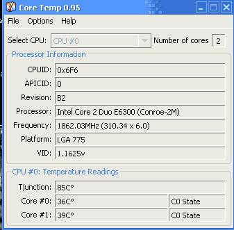Hab leichte Probs wenn ich auf 2,4GHz hochgehe behauptet CoreTemp der Prozzi wär bei über 80°C .. ist zwar ein boxed aber trotzdem glaube ich lieber SpeedFan (66-69°C).