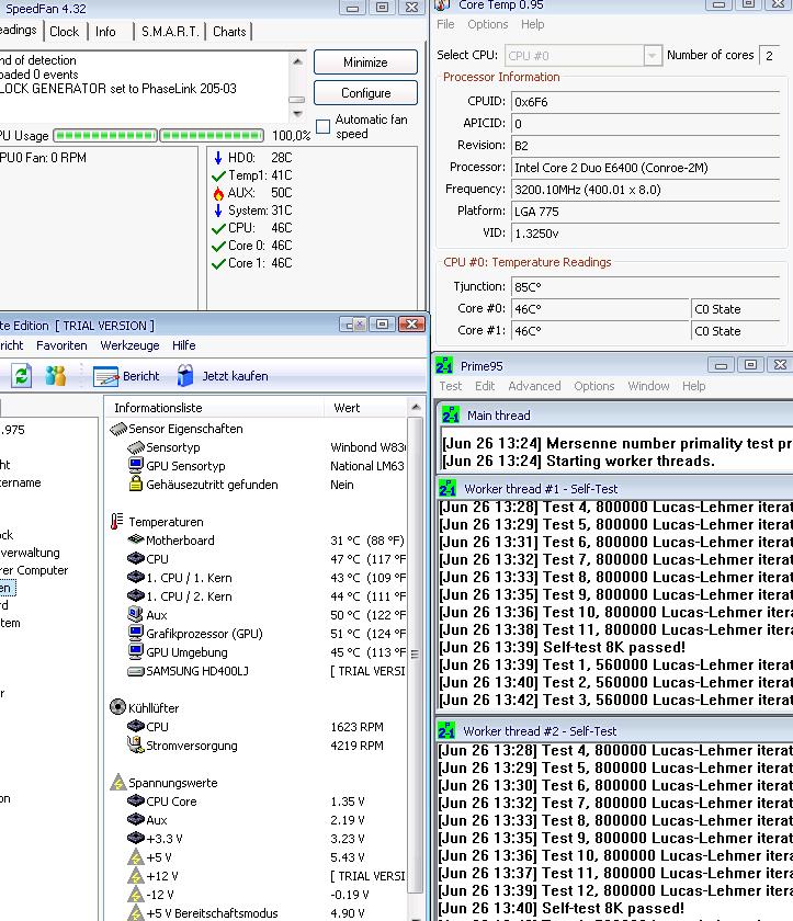 Wenn ich bei Everest (Ultimate) den CPU Stresstest anwerfe knallt mir die Temp der CPU auf 63° hoch. Da kann doch was nicht stimmen, oder?