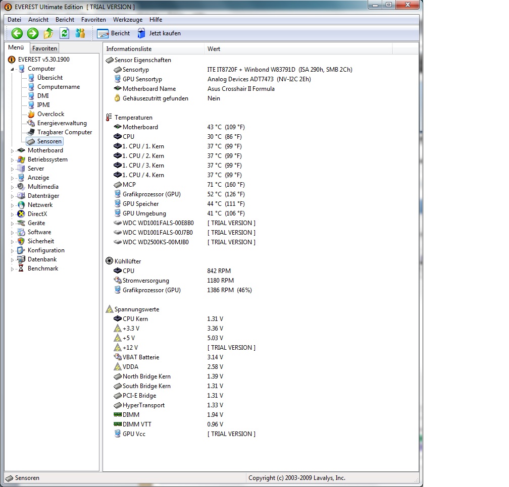 Ich möchte dazu sagen, dass es im Gehäuse noch etwas an Airflow fehlt - beide Seiten offen und noch keine Gehäuselüfter verbaut.