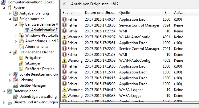 Ereignisanzeige -> Benutzerdefinierte Ansichten -> Administrative Ereignisse