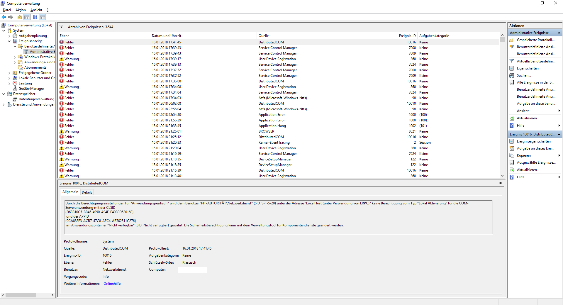 Vielleicht in der Ereignisanzeige prüfen, ob hier mehr Informationen vorliegen