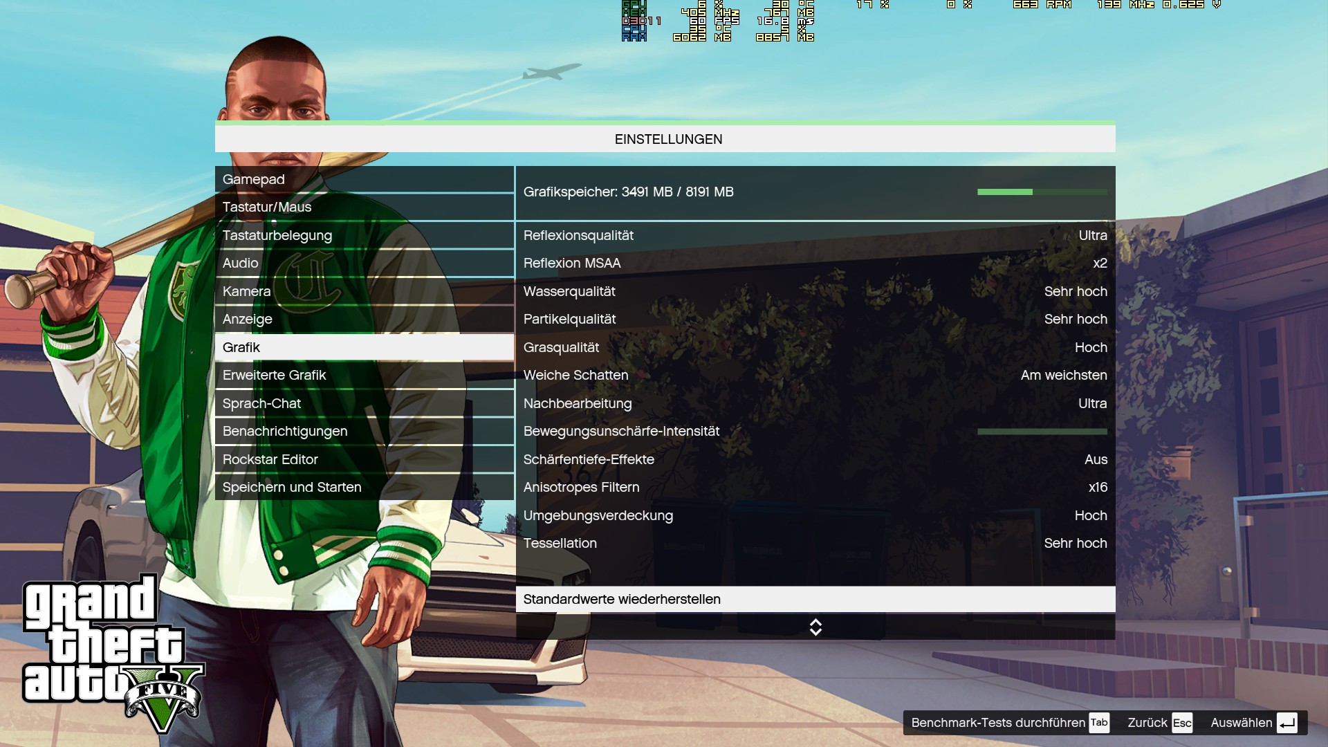 Nachbearbeitung auf Normal. Ich bin sowieso kein Fan von den übertriebenen Post Effekten.gunmarine schrieb:sagt mal was sind denn die verzichtbaren fps killer auf wqhd? hab heute meine 980 ti bekommen, aber momentan muss die poseidon noch unter luft laufen (1492 mhz max wegen TT). hab mir gta v bis zur neuen gpu aufgehoben, bis aufs gras alles auf anschlag, was fällt sonst noch am wenigsten auf und bringt vllt 10 avg fps mehr? bin die meiste zeit bei 40-60, akzeptabel mit gsync aber vlkt hat wer nen guten tipp worunter die optik nicht leidet ;-)