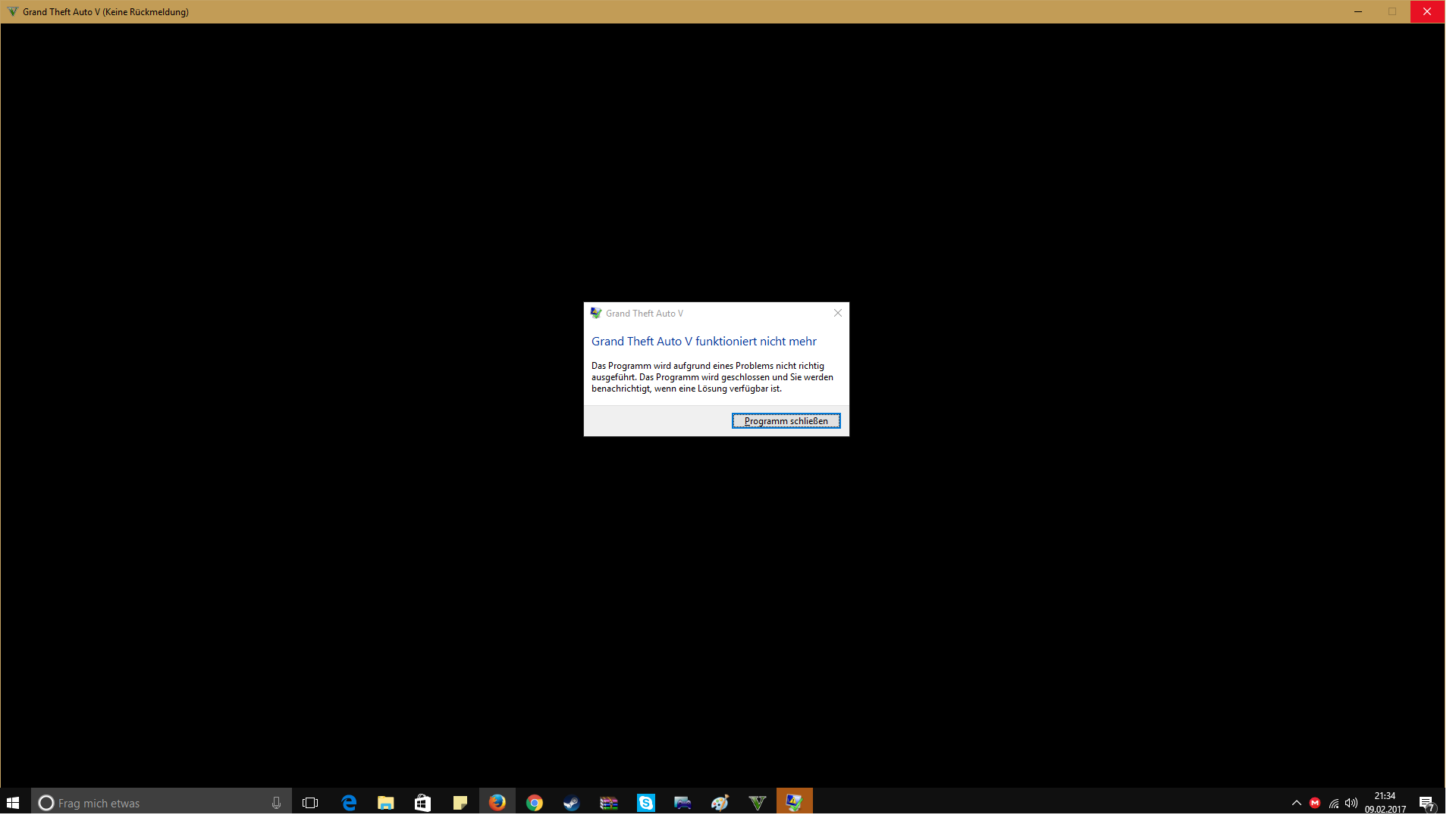 Das Programm stützt ab und Windows zeigt eine Fehlermeldung also Problem melden / Programm schließen bla...