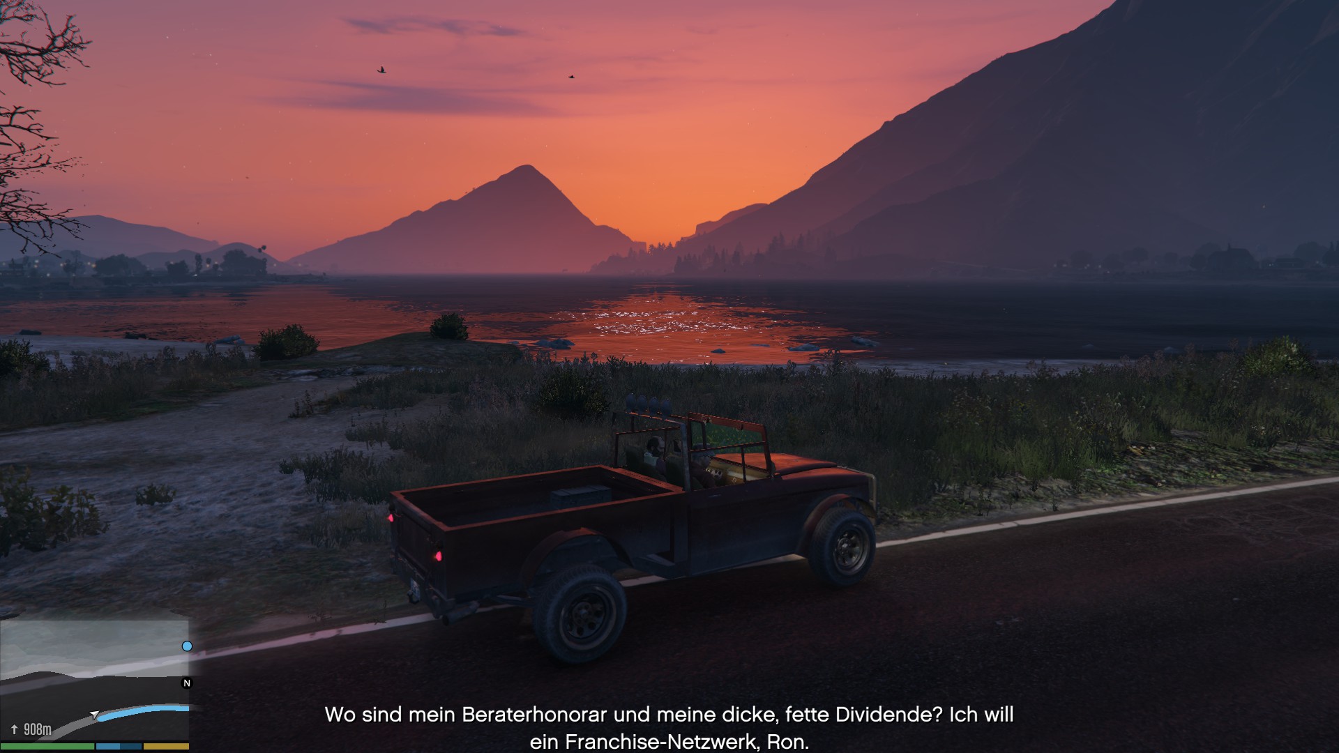 Nein, ich habe folgendes gemacht: Im Nordwesten habe ich das Sonar Collections Dock für 250.000$ gekauft. Dort spawned dann ein U-Boot, mit dem man Atommüllfässer vom Meeresboden aufsammeln kann (eins der Collectibles im Spiel). Jedes Fass bringt 23.000$ und sobald man alle 30 gefunden hat gibt es noch einmal einen Bonus von satten 250.000$ obendrauf, womit man die Investition wieder drin hat. Am einfachsten ist es, alle 30 in einer Sitzung zu sammeln, da man sonst mit dem elendig langsamen U-Boot jedes mal wieder am Pier anfangen muss. In knapp 2h ist das ganze aber machbar, und für 690.000$ Gewinn durchaus eine Überlegung wert.