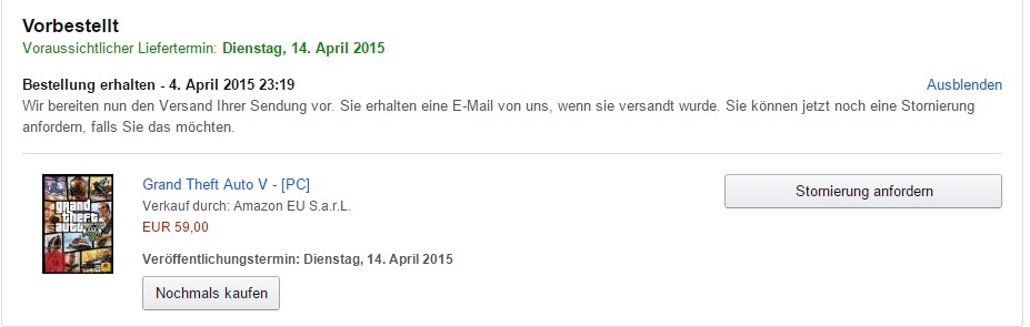 Morgen kommt das Spiel sicher an, ich hab noch nie bei Amazon ein Spiel nach dem VÖ bekommen, aber auch noch nie am Vortag. Es kam immer erst am Tag der Erscheinung bei mir an.