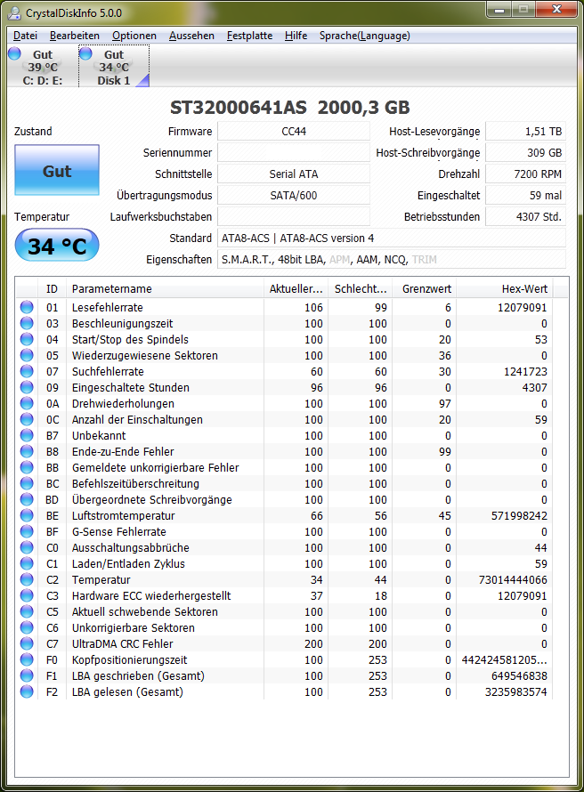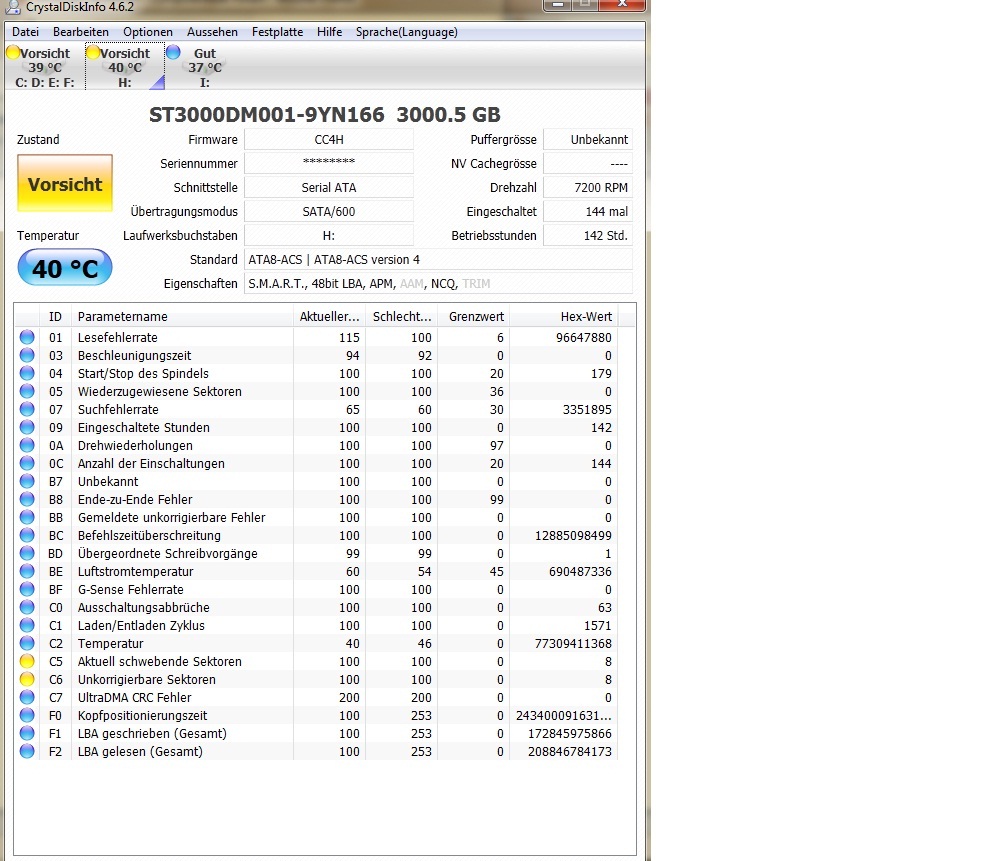 Leise ,schnell,gut.......ABER leider bei CrystalDiskINFO macht die platte mir sorgen