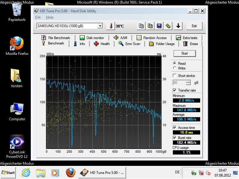 Sind die Einbrüche direkt nach Start der Benchmark normal? Access-Time i.O?