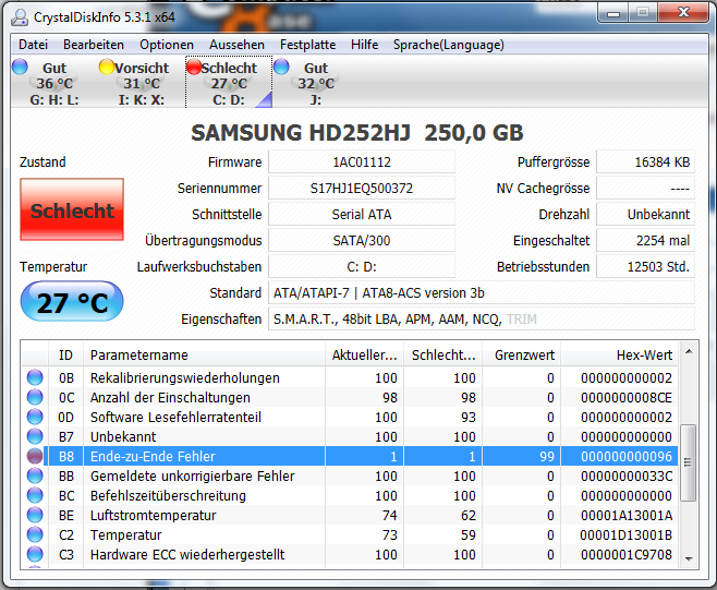 Error 6 occurred at disk power-on lifetime: 9835 hours (409 days + 19 hours)