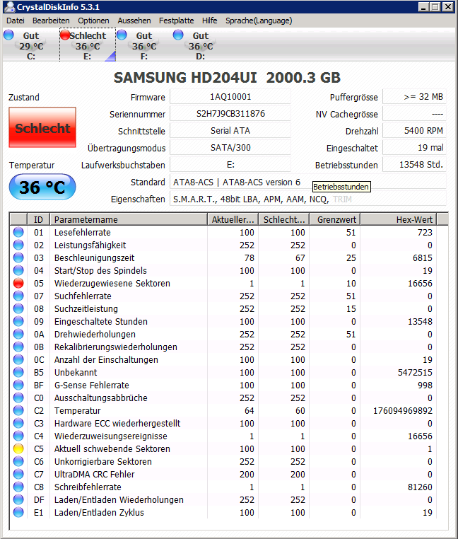 Error 5 occurred at disk power-on lifetime: 4870 hours (202 days + 22 hours)