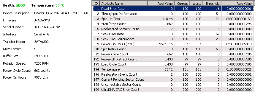 5 Reallocated Sectors Count 2 100 100 5 0x000000000002