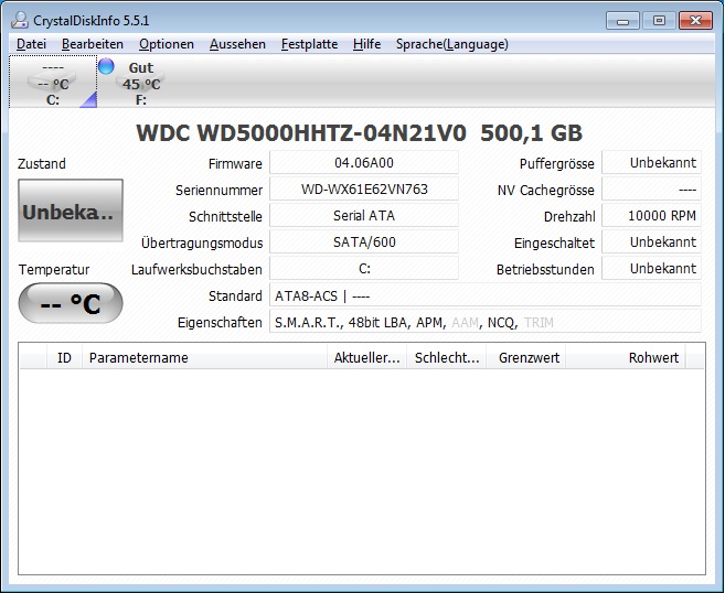 Da ich immer die Werte der Festplatten auslese und auch regelmäßig beobachte bezüglich dem Zustand, habe ich bei der neu eingebauten WD nun das Problem das kein Festplatten-Programm in der Lage ist weder den S.M.A.R.T. noch die Temperatur auszulesen. Da mir sowas zuvor noch nie passiert ist und bevor ich immer blöd frage, im i-net suche, fand ich leider auch keine Lösung auf mein Problem.