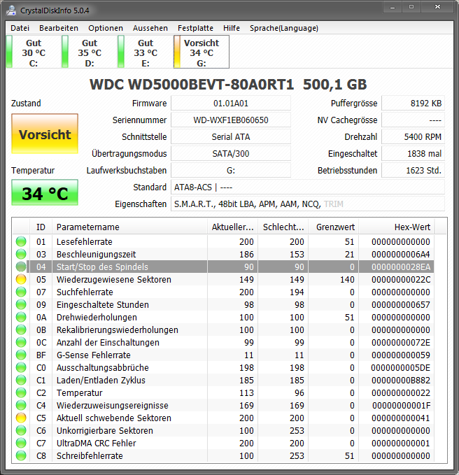 Vendor Specific SMART Attributes with Thresholds: