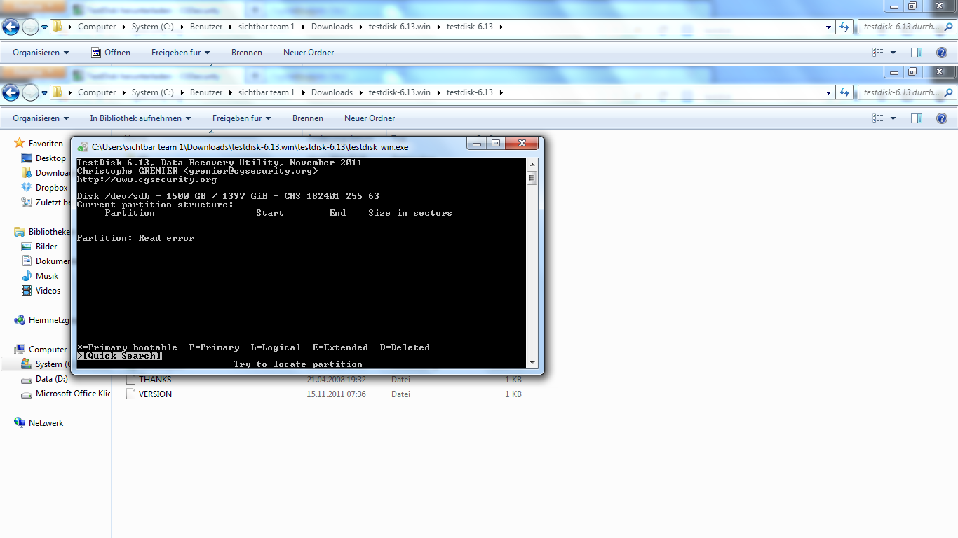 Ich kenne mich mit TestDisk nicht aus und werde mir die diversen Beispiele und Tutorials durchlesen.