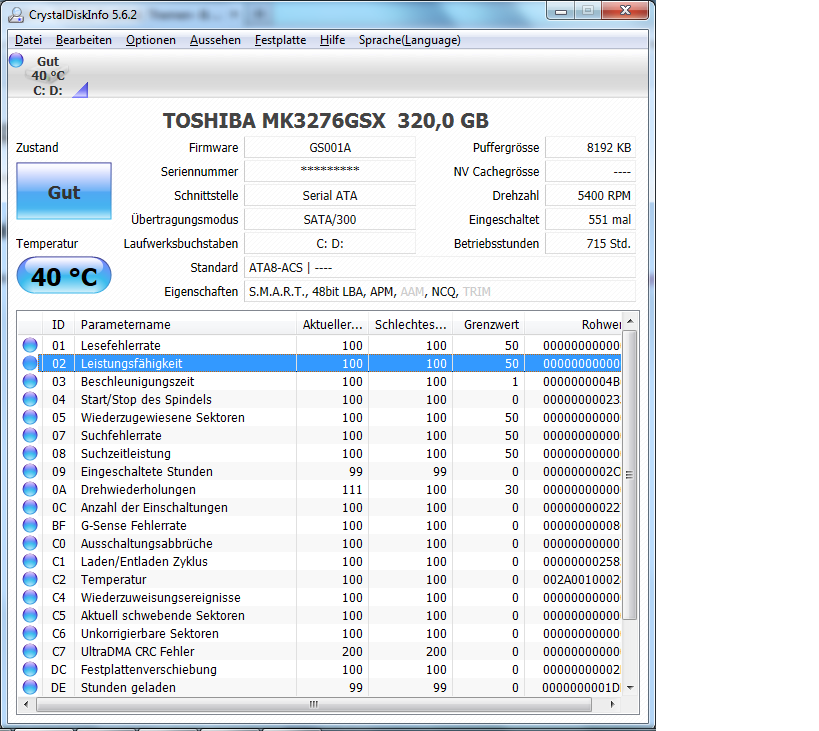 In dem Gerätemanager wir die Platte als "Laufwerk" bezeichnet. In der Datenträgerverwaltung wird nach dem Fehler: "Laufwerk kann den angeforderten Sektor nicht finden.", ein schwarzer Balken und der Hinweis "Nicht initialisiert - nicht zugeordnet" angezeigt.