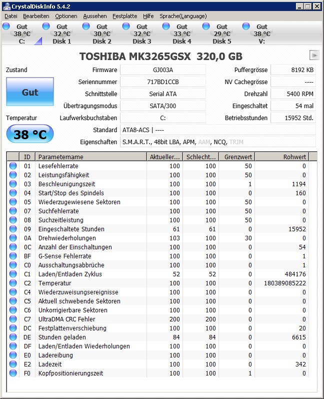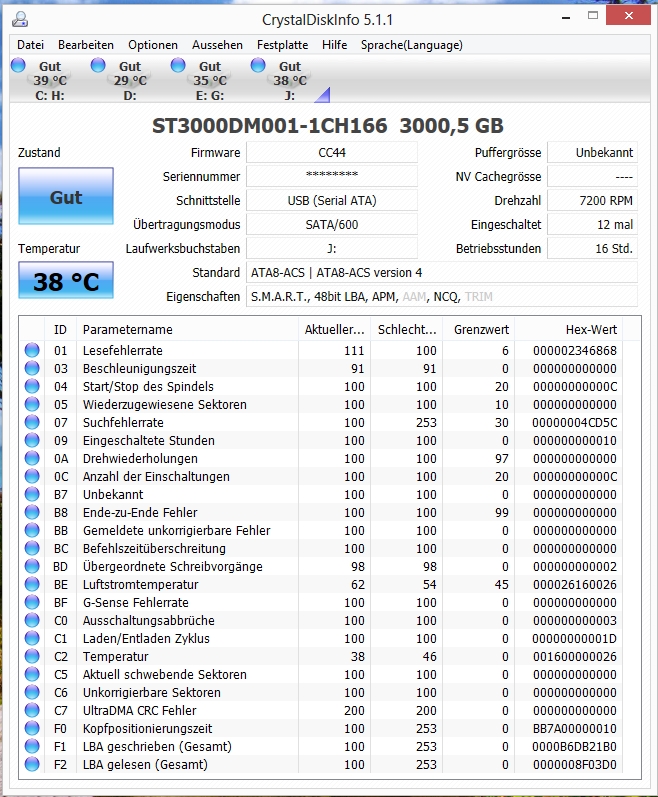 (Erst habe ich bemerkt, dass ich auf einen größeren Ordner nicht mehr zugreifen konnte. Fehlermeldung "Ausgabefehler". Andere Ordner waren aber in Ordnung. Ich habe zwar befürchtet, dass das Dateisystem beschädigt sein könnte, aber hab den Rechner dann erst einmal neu gestartet. Danach wurde die Platte nicht mehr erkannt. Stromversorgung ist aber ok, und die kleine weiße LED auf der Rückseite ist auch an und flackert ab und zu. Neues Kabel brachte keine Besserung.)