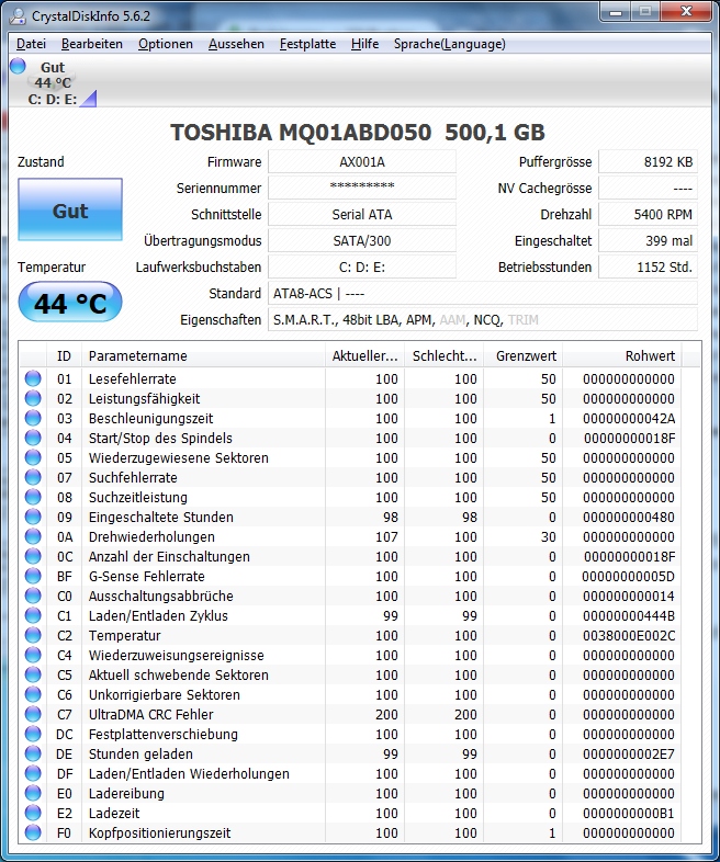 Die Samsung läuft auch noch wie am ersten Tag, keine Aussetzer oder ähnliches, habe mehr oder weniger durch Zufall die SMART-Werte mal ausgelesen.