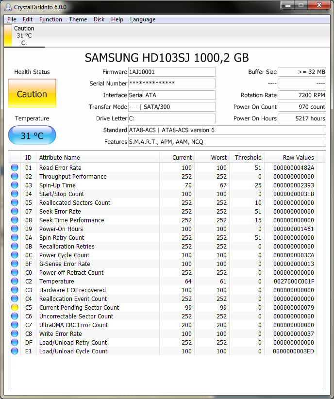 @Phear: offensichtlich gebraucht, hoffentlich nur ein Irrtum des Versandes. Die angezeigten SMART Werte speichert die Plattenelektronik selbst, CDI liest diese nur aus.