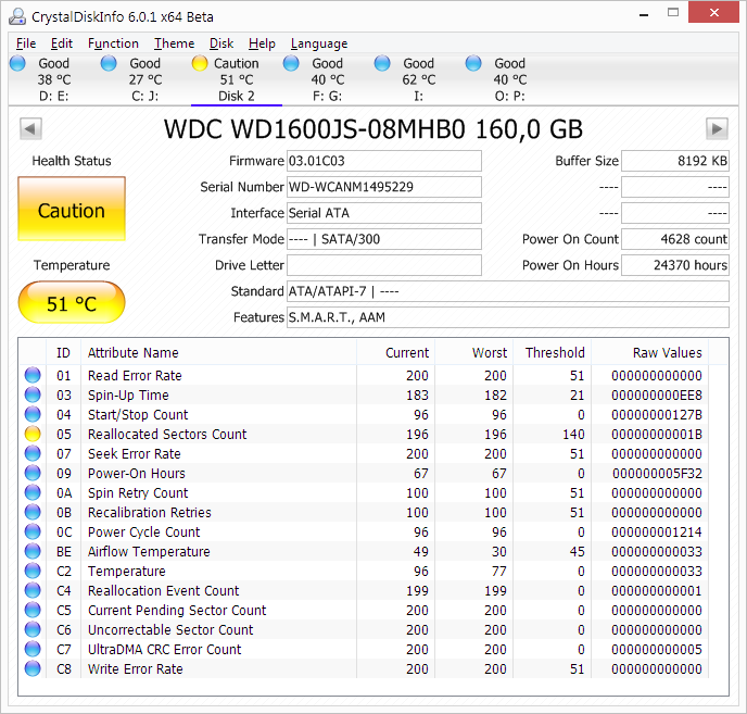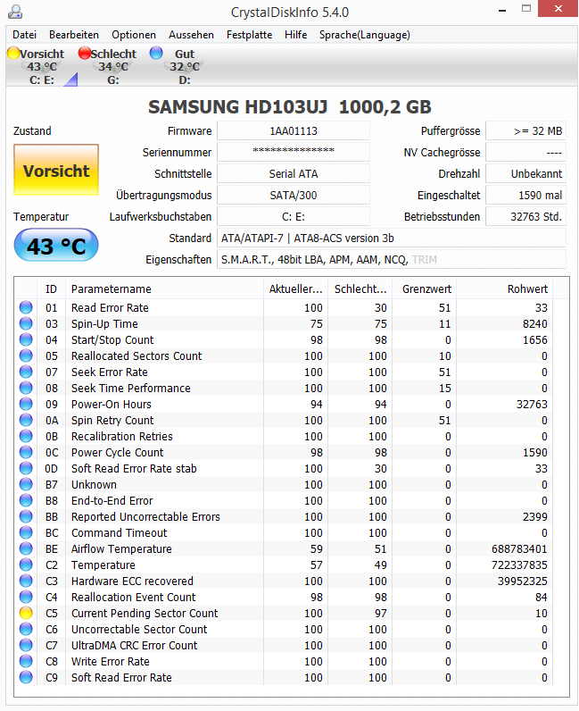 EDIT: Hier noch ein Screen von CrystalDiskInfo. Soweit scheint alles ok. Oder gibt es auch einen Zustand "sehr gut"? Den sollte eine brandneue Platte doch haben?