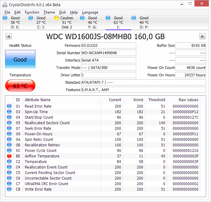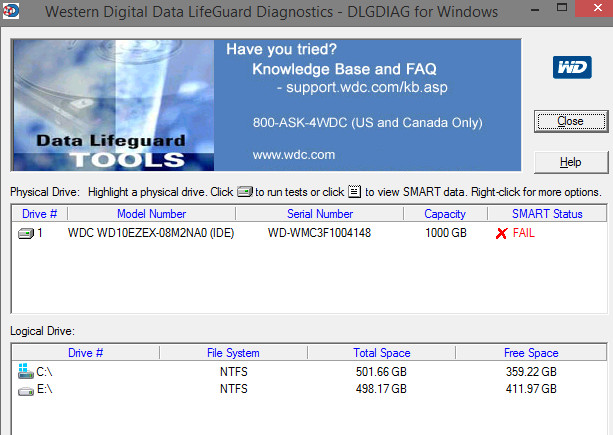 2. Außerdem: das Programm HWMonitor zeigt alle Temperaturen usw. an, nur die Festplatte nicht. Und das WD Diagnose-Tool (WD Data Lifeguard) sagt bei "SMART Status": "FAIL". Stimmt vielleicht generell was nicht mit der Platte?