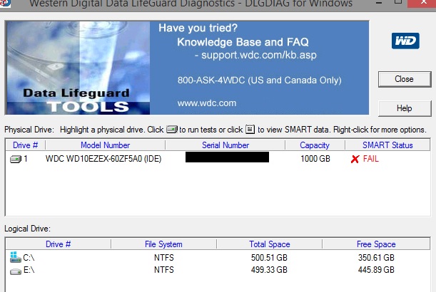 Nun, ein paar Stunden später, habe ich alle Programme und Treiber eingerichtet und leider sagt das WD-Tool jetzt "SMART Status: Fail"...