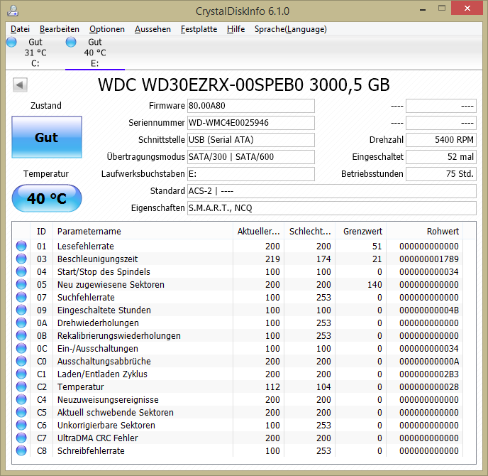 It will show your current setting, which means head parking every 8seconds (we want to change that).