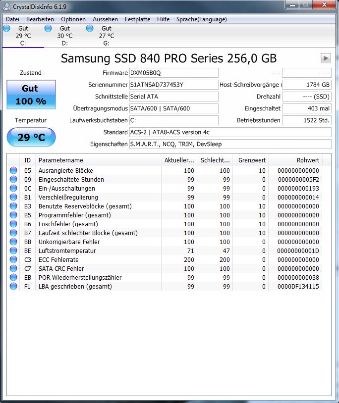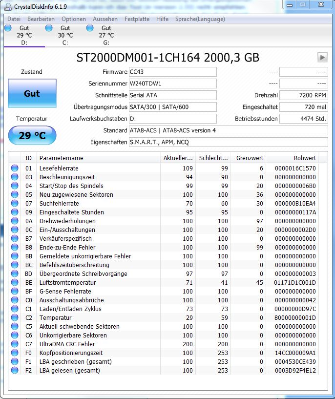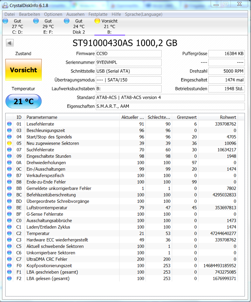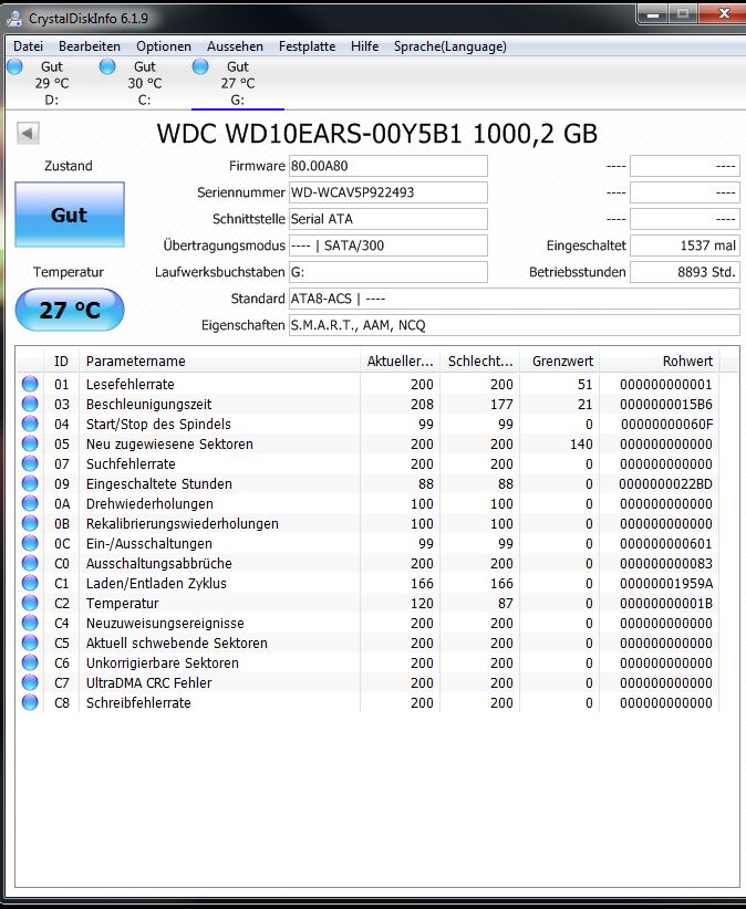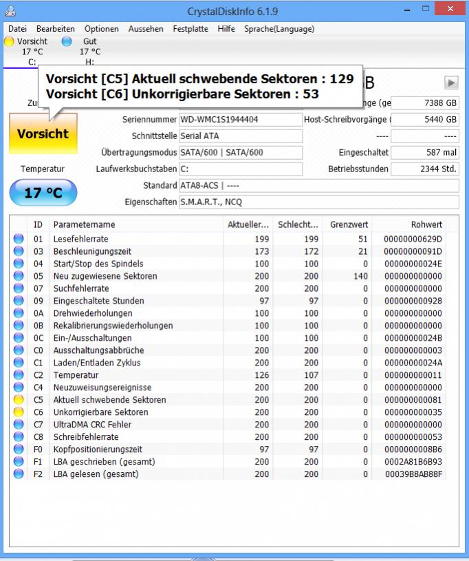 Gehörst du zu der Mehrheit, deren Festplatte noch funktioniert, jedoch eigentümliche SMART-Werte aufweist, evtl sogar