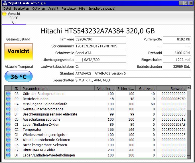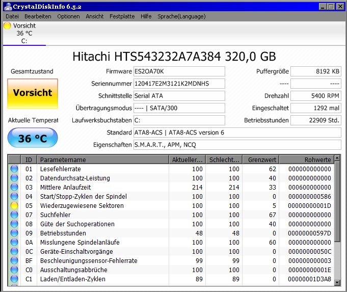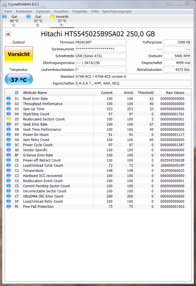 EDIT: Nach dem dritten Sektor-Quicktest liegt die Les.Fehlr. bei 73673 und 82 pending sectors.