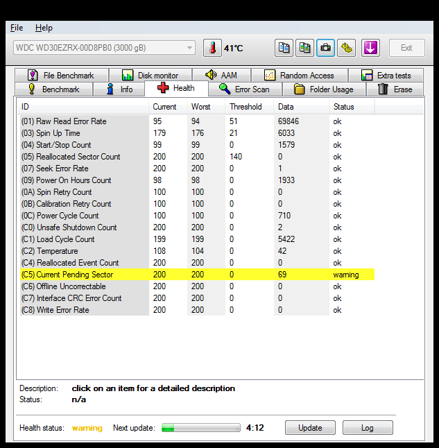 Current pending sectors: 69