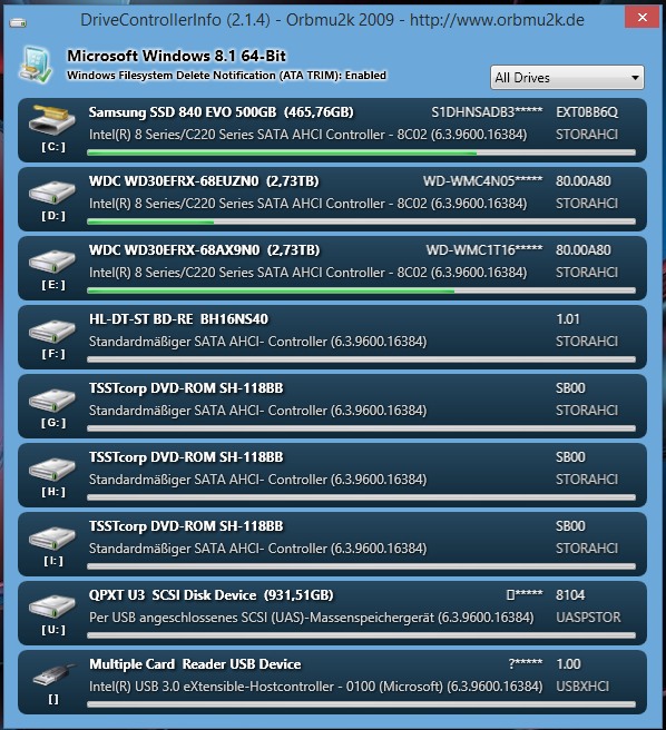 Nachtrag: ganz toll finde ich übrigens auch, dass Hersteller-Tools bei mir überhaupt nicht funzen. Am Laptop sucht Seatools ewig nach der festplatte und findet nix. hängt die hdd mit der docking station am win 8 rechner, schmiert der beim starten von seatools sofort ab. mit dem WD-Tool der SDD wars übrigens das gleiche. *thumbs up*