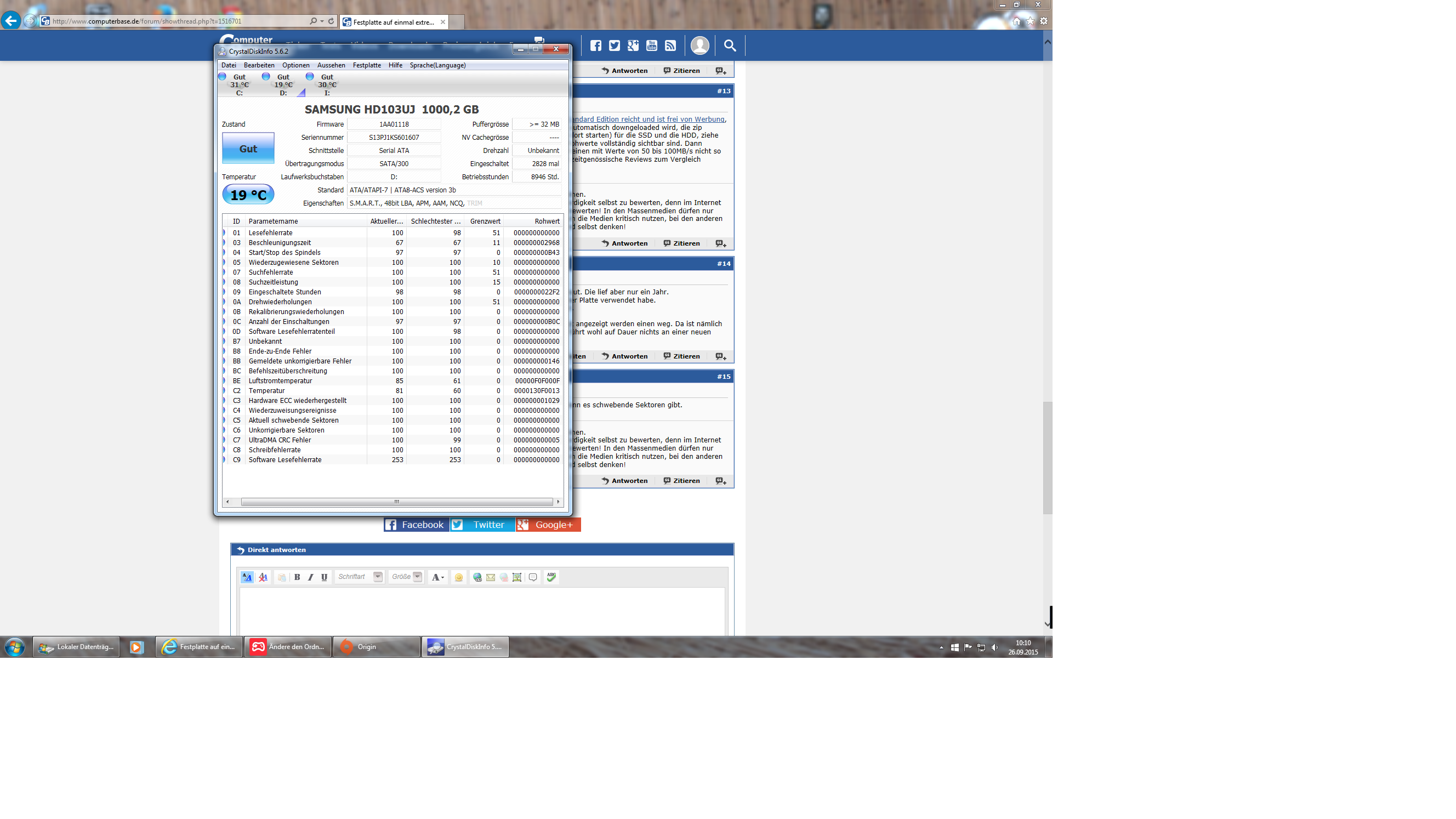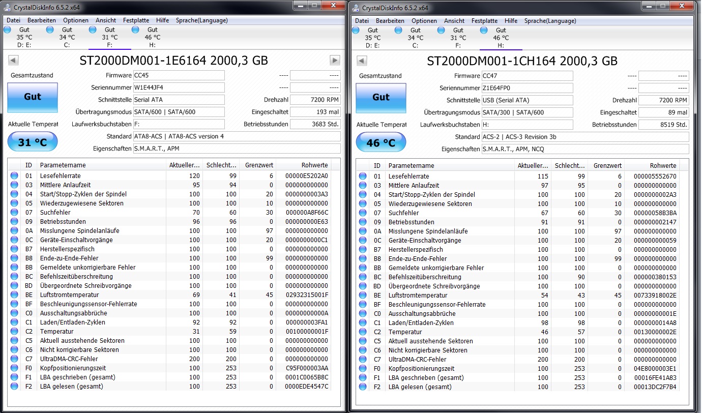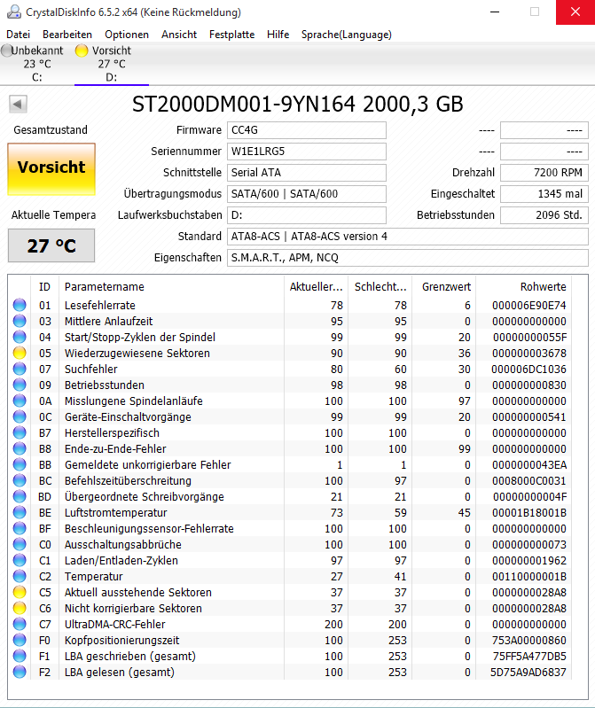 Festplatte scheint also soweit in Ordnung? Mich verwundert halt dieser extrem schlechte eine Wert