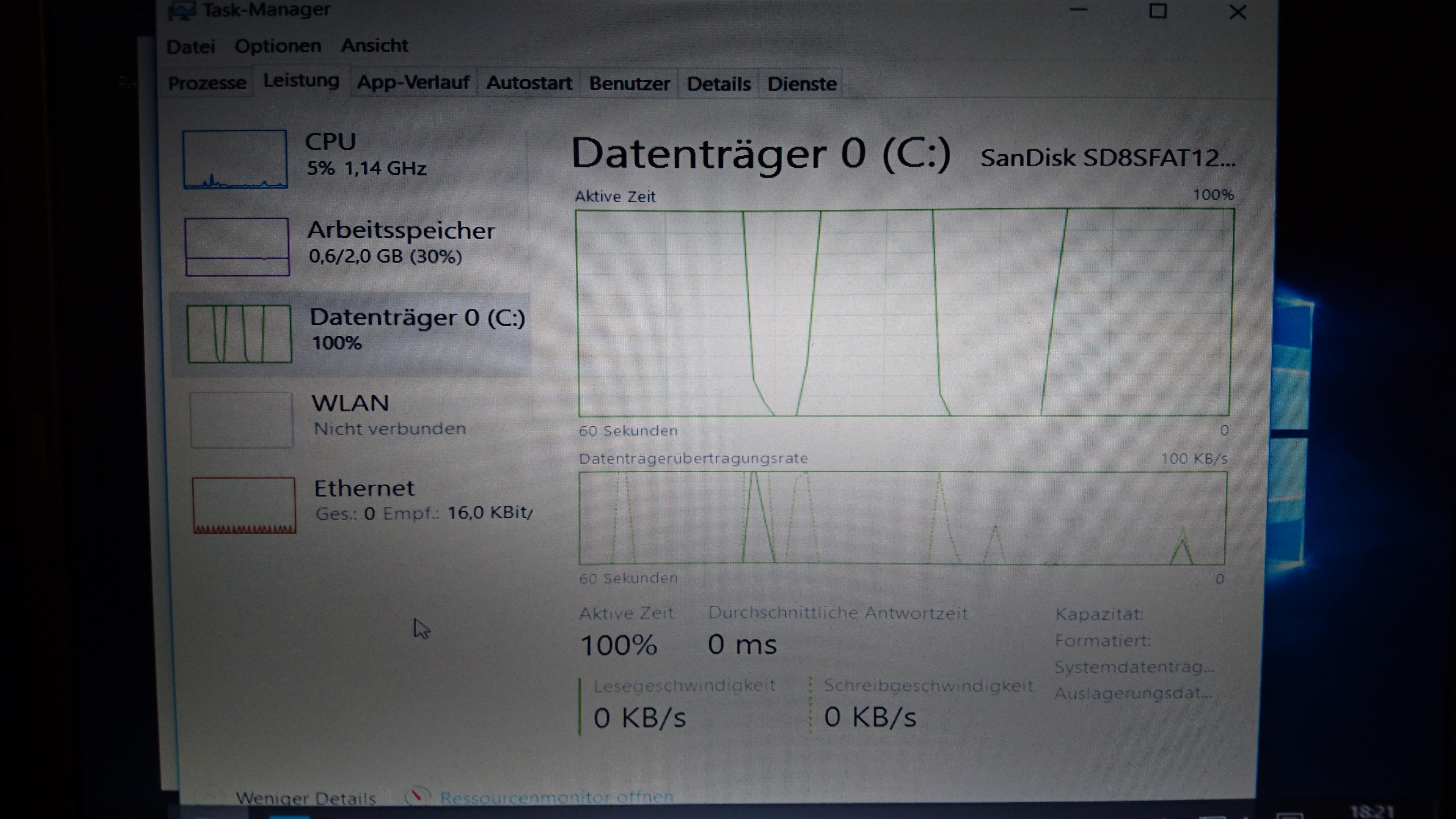 Habe folgendes Problem, habe eine neue SSD in den Laptop eingebaut und Windows 10 installiert. Nun ist die Datenträgerauslastung fast immer auf 100% obwohl keine Daten fließen. System läuft entsprechend bescheiden. Jemand eine Idee, anbei mal ein Bild fürn Screenshot ist mir das Ding gerade zu lahm. Anhang anzeigen 523597