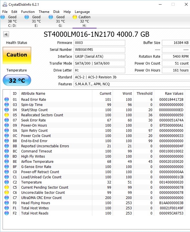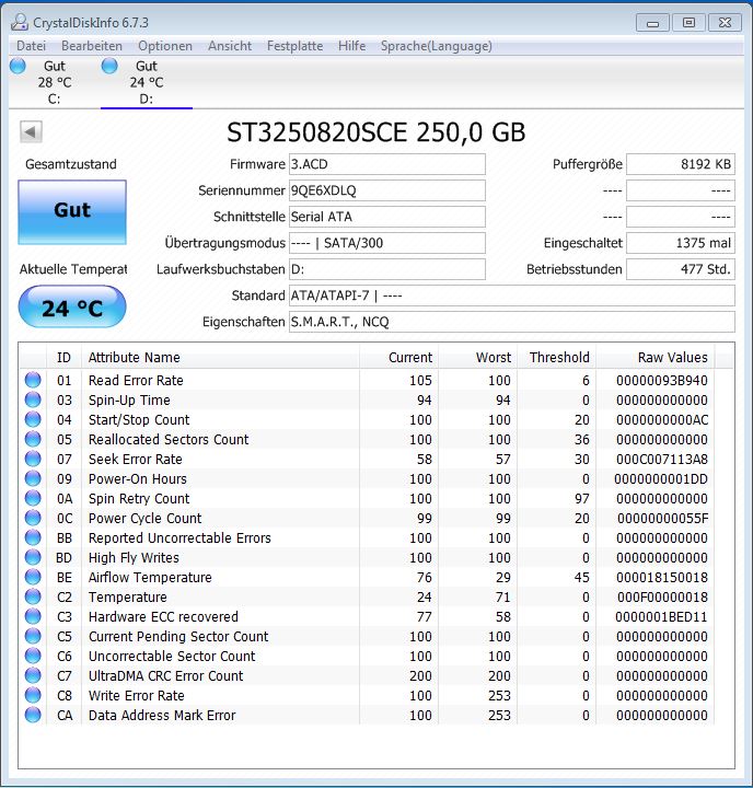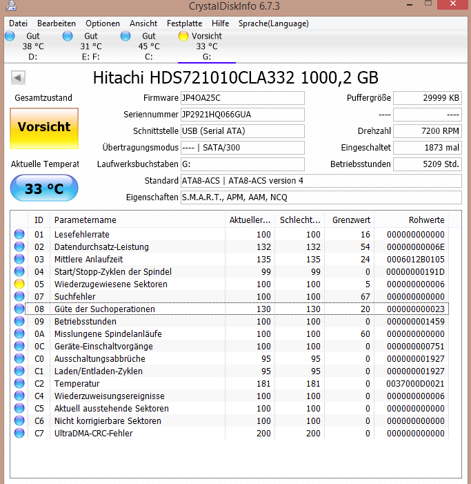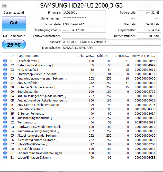 Die Samsung HD103UJ könnte man noch als zweites Backup nutzen, aber wie gesagt ist bei Ende-zu-Ende Fehlern das Problem der Silent-Data-Corruption ganz real gegeben. Du kannst sie ja mal formatieren und schauen ob es einfach nur ein einmaliges Ereignis war, z.B. ein Soft-Error im Cache RAM der dort ein Bit hat kippen lassen (die kommen immer mal vor, da gibt es nur ECC RAM einen Schutz davor) oder ob der Cache RAM Baustein oder ggf. ein anderer Chip da wirklich einen Fehler hat. Ich würde die also mal mit