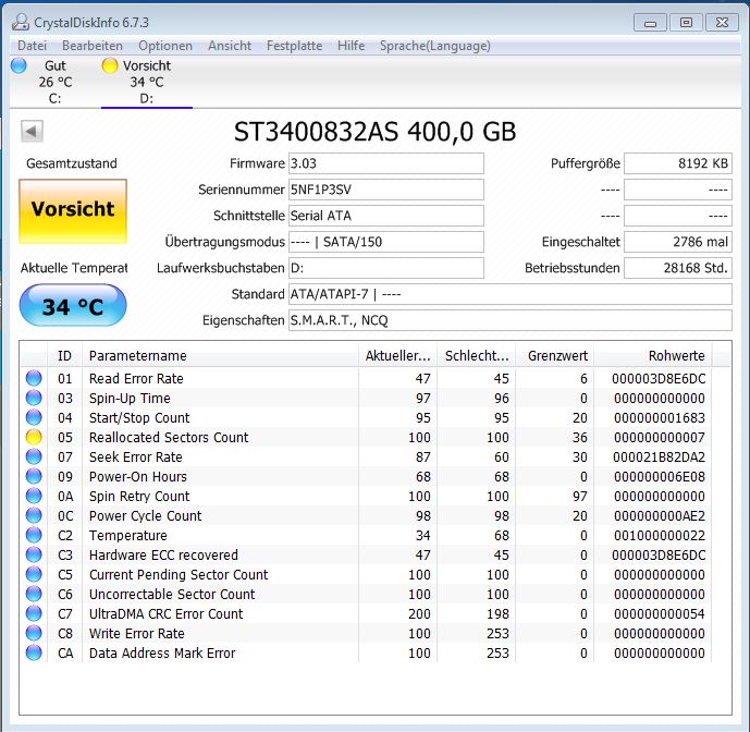 Manche raten ja schon eine HDD nach dem ersten defekten Sektor (die ganz unwissenden sogar schon beim ersten schwebenden Sektor, dabei kann der auch ganz andere Gründe haben z.B. einen Stromausfall beim Schreiben) zu entsorgen, weil damit die Wahrscheinlichkeit eines baldigen Ausfalls steigt. Das stimmt zwar, aber es muss eben nicht zwingend zu einem baldigen Ausfall kommen, ob es dazu kommt, hängt eben vor allem von der Ursache für den/die defekten Sektoren ab. Das kann ein Schaden oder Schmutz in der Platte sein, der bald weitere Schäden verursacht, es muss aber nicht so sein. Es gibt Platten da wurden mal ein paar Sektoren ausgetauscht und die dann noch Jahre problemlos liefen.