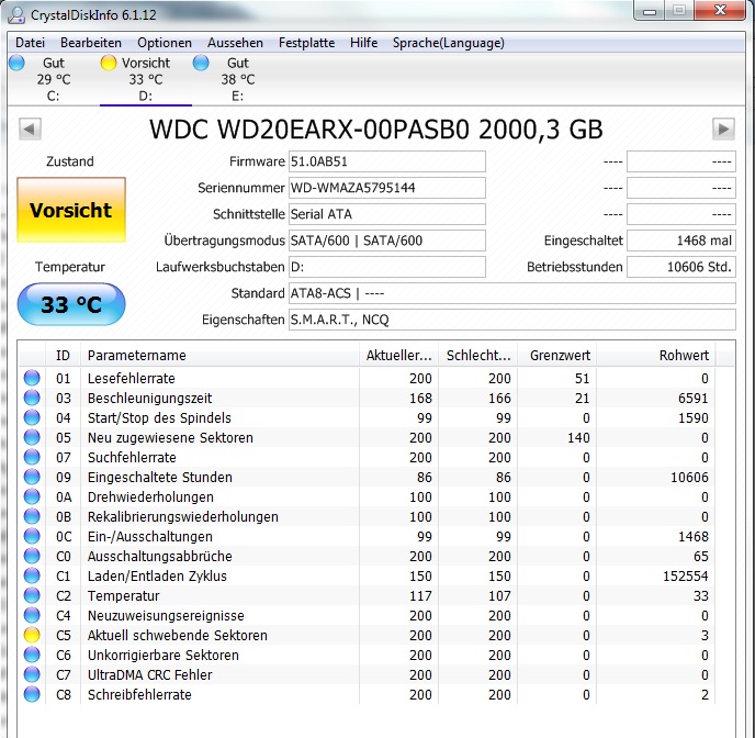 Nachdem der PC wieder beim Besitzer landete, kam wieder eine Fehlermeldung, die ich nicht mehr weiß, daraufhin fuhr der PC wieder runter und hoch. Diese Fehlermeldung gab es vor der Installation schon teilweise. Man kam bei beiden Fällen nur in den abgesicherten Modus mit Netzwertreibern rein (andere Varianten nicht probiert). Die Festplatte hatte dann ca. 100 CRC-Fehler mehr, die anderen Fehler blieben gleich, glaube ich.