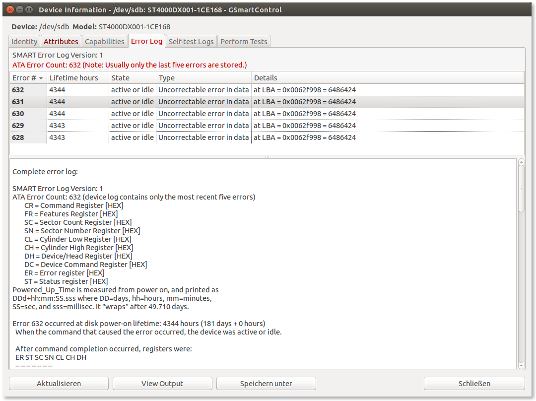 Error 632 occurred at disk power-on lifetime: 4344 hours (181 days + 0 hours)