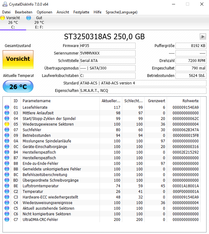 ATA Error Count: 632 (device log contains only the most recent five errors)