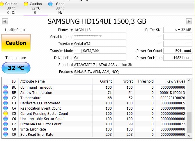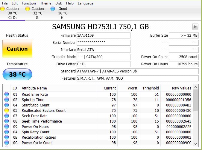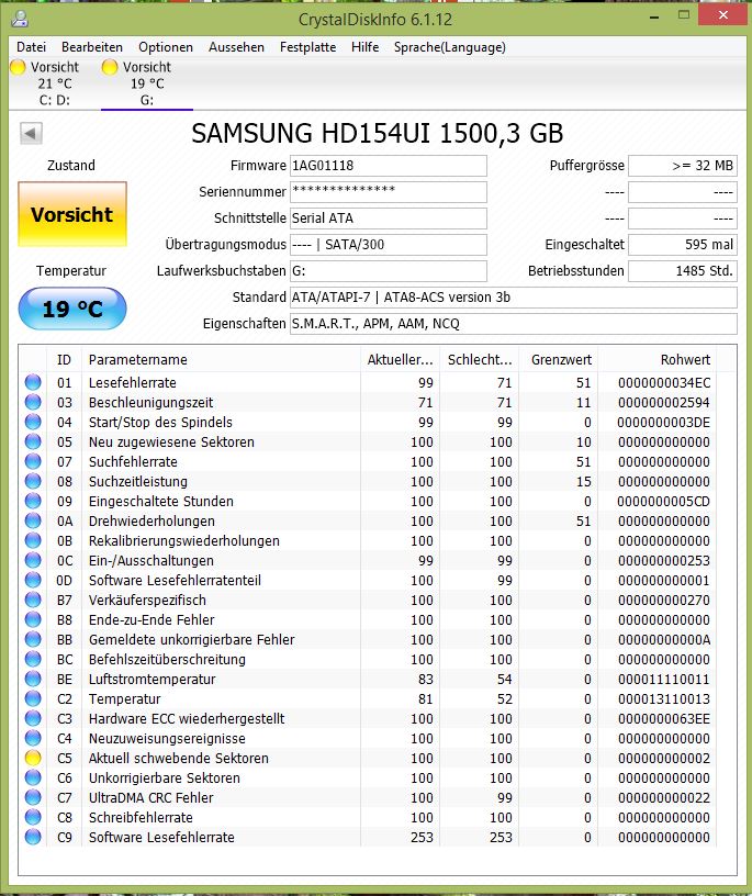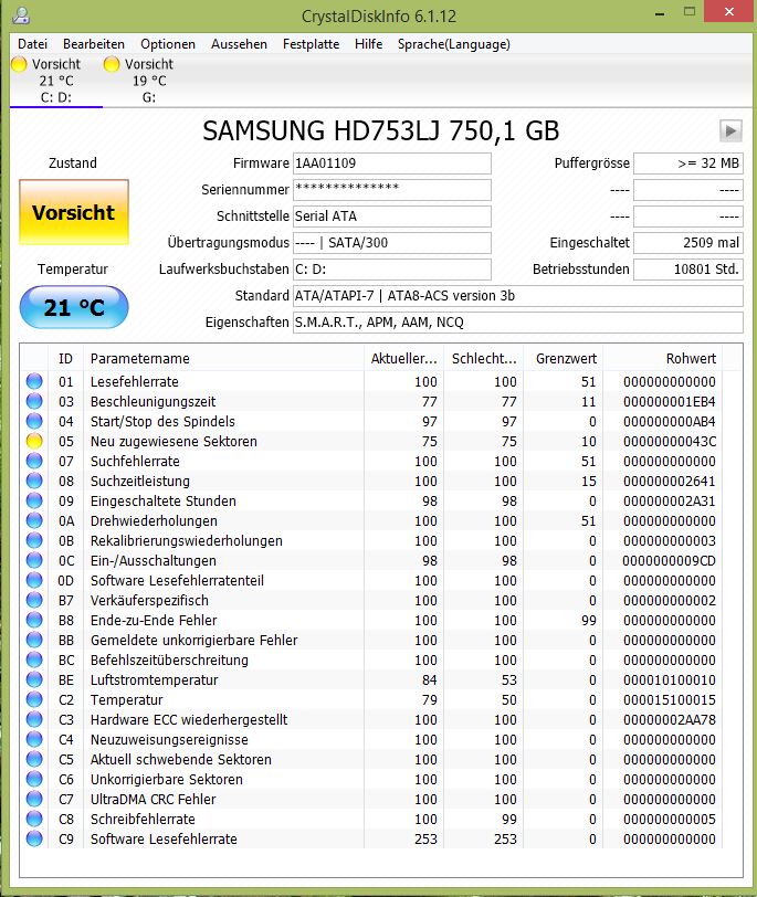 Achte darauf, dass bei ihm der Rohwert des Attributes C7 nicht steigt, denn solange der Fehler nicht beseitigt ist, wird das passieren.