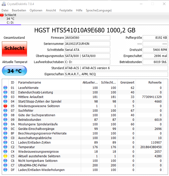 Indes rüttelt die 500gb weiter an SATA bis ich ne Lösung habe...