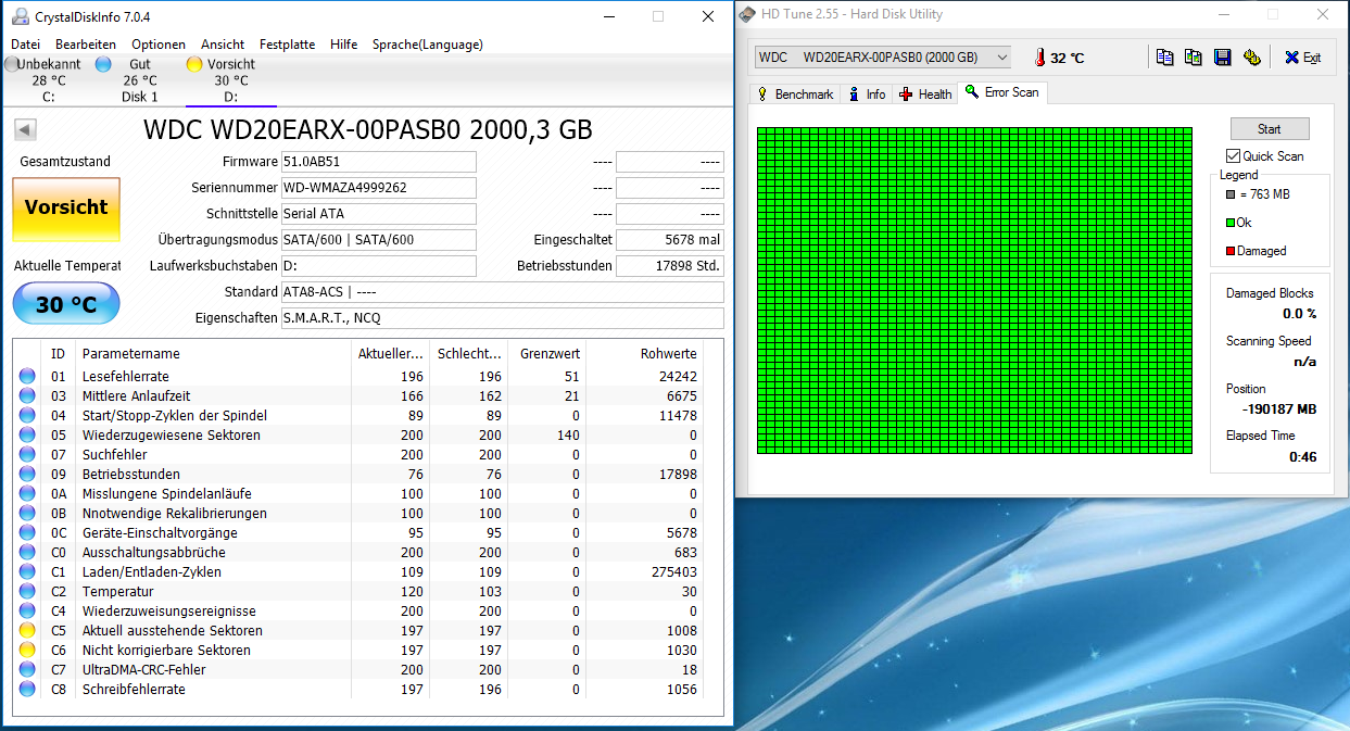 Das die Einträge von ID C6 (nicht lesbare Sektoren die bei Selbsttests gefunden wurden) nicht auf 0 gestellt wurden ist halt unschön, dürfte aber der Verwendbarkeit nicht im Wege stehen.