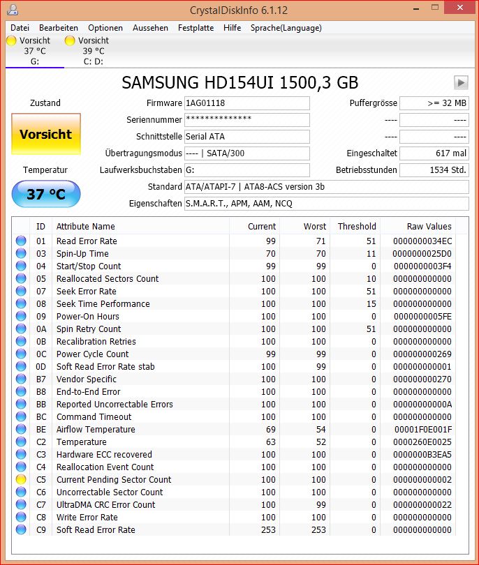 Das ist ungünstig. Sicherheitshalber würde ich diese mittlerweile doch kleine Platte ersetzten, insbesonderes da doch 2066 Sektoren nicht gelesen werden können (C5), ob sie defekt sind zeigt sich erst nach dem nächsten Beschreiben.