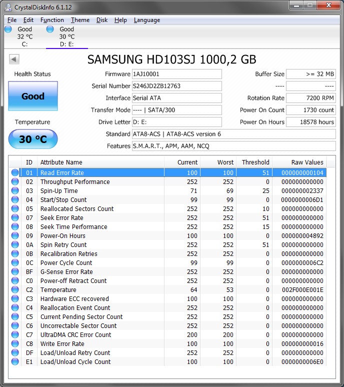 1) CrystalDiskInfo