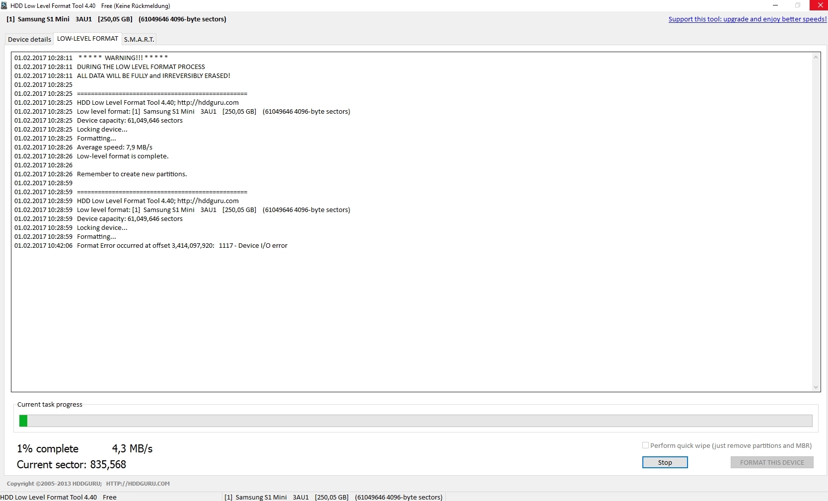 Ja und zwar so viele, dass alle Reservesektoren verbraucht wurden. Außerdem hat der G-Sensor der Platte drei zu harte Stöße registriert und da der das nur im Betrieb machen kann, war sie dabei eingeschaltet. HDDs sind sehr empfindlich, gehe vorsichtig damit um! Von HGST gibt es dieses Video über die Empfindlichkeit und korrekt Handhabung von HDDs, mit dem Empfehlung wie die Umgebung aussehen sollte auf denen mit HDDs gearbeitet wird und sie weisen darauf hin, dass die Schäden sich auch erst später bemerkbar machen können.filmer11 schrieb:Diese macht nun grosse Probleme. Wahrscheinlich Sektoren defekt. Kann man da noch was machen?