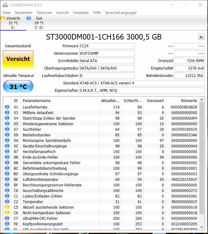 die Transferraten mit HD Tune sind mega lahm (Einstelliger MB-Bereich), im Defragmentierungstool taucht sie gar nicht mehr auf
