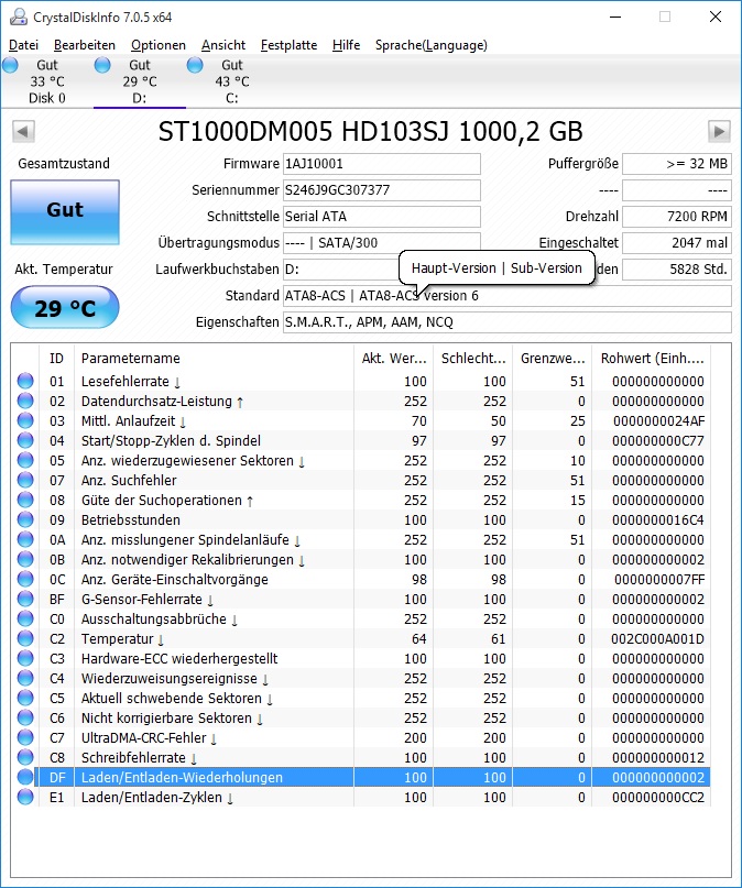Allerdings sehen das Crystal Disk Info und HD Tune anders (HD Tune hängt auch an der jetzigen Stelle).