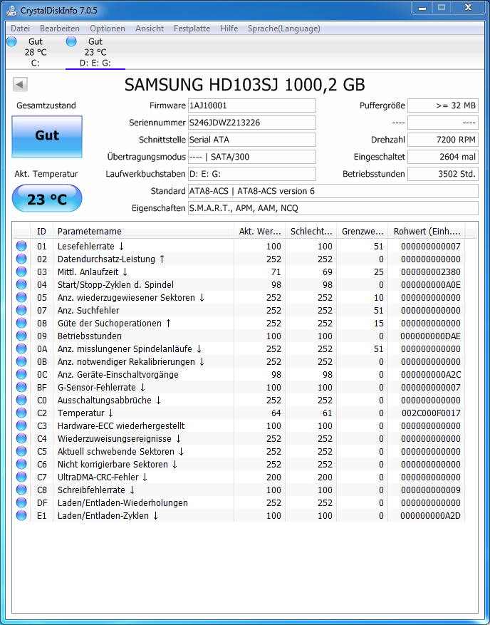Dann bitte auch den ersten Post beachten und einen Screenshot der SMART-Werte posten.