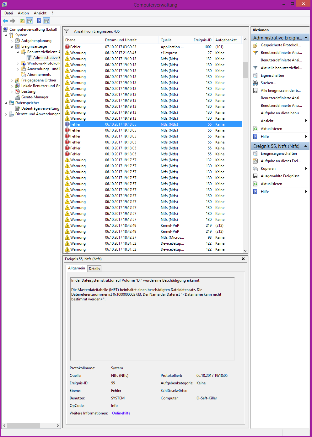 In der Tat habe ich Wechselrahmen und nutze diese auch hot-swap. Deshalb wohl die 196 "unerwarteten Spannungsfälle".