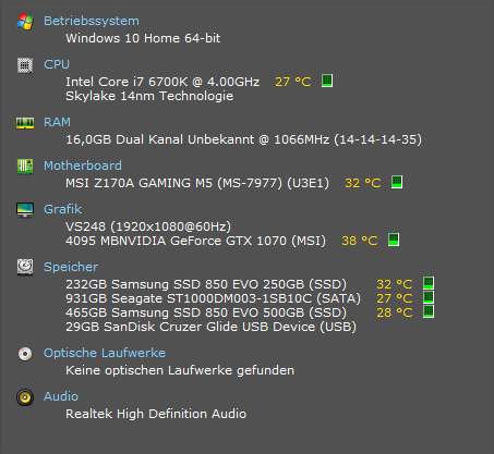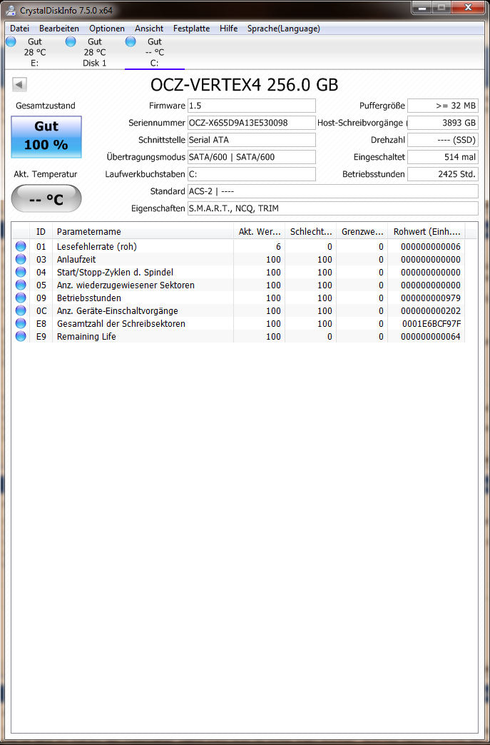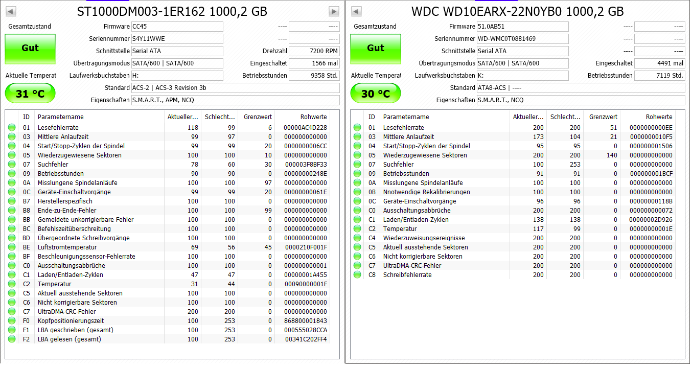 Hier im Anhang befindet sich SMART-Analysen von zwei verschiedenen Programmen und meine PC-Specs.